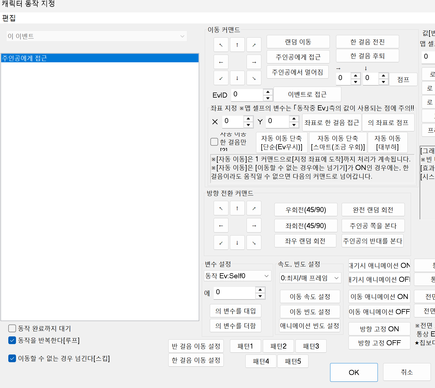 이동 커맨드에서 [주인공에게 접근]을 클릭하고 좌측 하단의 루프를 체크해 주면 완성!!