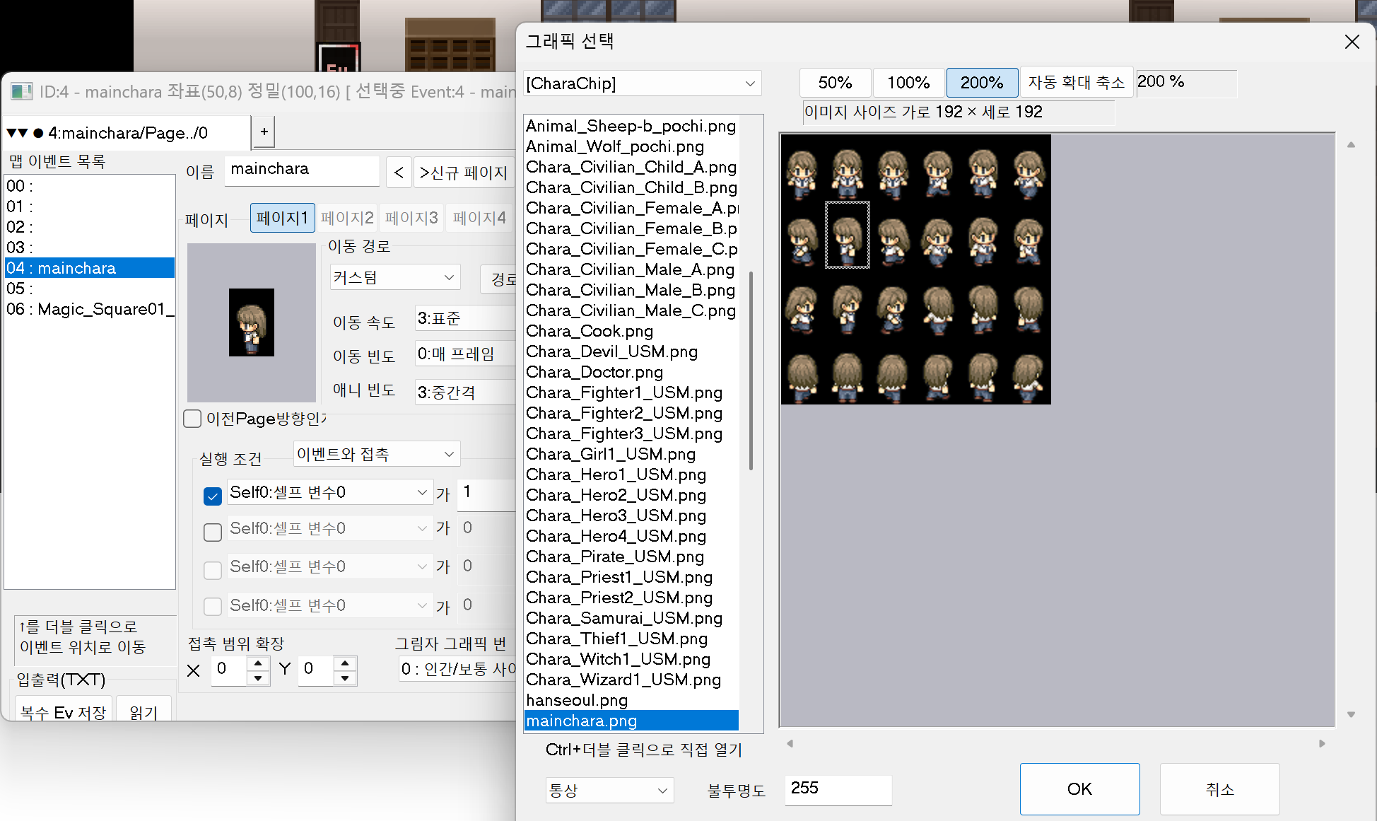 괴물이 등장해야 하는 곳에 이벤트를 만들고 그래픽을 선택해서